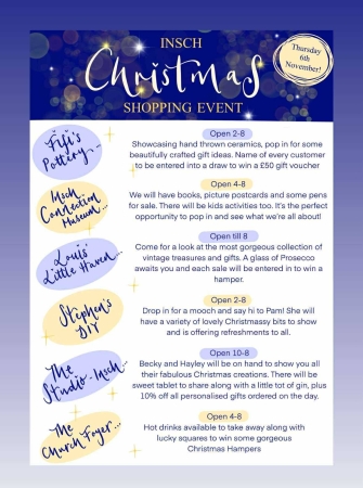 We will be open on the 6th of November from 4-8pm for the Insch Shopping Event. Everyone welcome!
